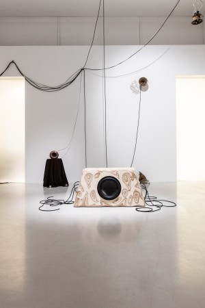 In What’s left speaks creëren Felix Bell, Gaia D’Arrigo en Nuno Lobo een meeslepende geluidsinstallatie die luidsprekers verbeeldt als chimere wezens, oprijzend uit de restanten van een post-menselijke omgeving. De installatie schetst een speculatieve wereld waarin je wordt uitgenodigd te ontdekken hoe deze wezens bestaan, communiceren en met elkaar verbonden zijn.