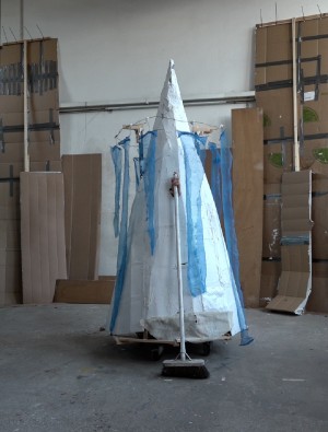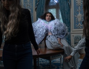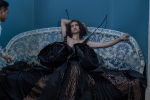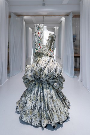 Een bloedserieus verkleedpartijtje. Daar blijf ik maar aan denken als ik foto’s van de collectie Diamonds in Diapers van kunstenaar en modeontwerper Jose Marie Sta. Iglesia bekijk. Sta. Iglesia studeerde afgelopen juni met de gelijknamige collectie af aan de Koninklijke Academie van Beeldende Kunsten (KABK) in Den Haag, van de Textile and Fashion-afdeling. Tijdens zijn huidige werkperiode bij het Haagse collectief Das Leben am Haverkamp, krijgt hij de ruimte het werk verder te ontwikkelen. Voorafgaand aan de tentoonstelling verdiep ik me in zijn afstudeerwerk en inspiratiebronnen.