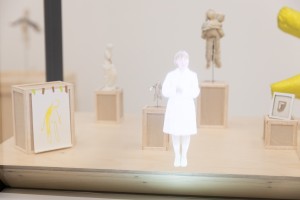 MY ALL • A LOW BUDGET SPECTACLE is een zelfportret door kunstenaar Luca Tichelman. In deze existentialistische video-installatie die grenst aan poppentheater ontmoeten we het personage Luca, een holografische miniatuur van de kunstenaar zelf. In een humoristische monoloog leidt ze de toeschouwer rond door de tentoonstellingsruimte, die getransformeerd is tot een archief.