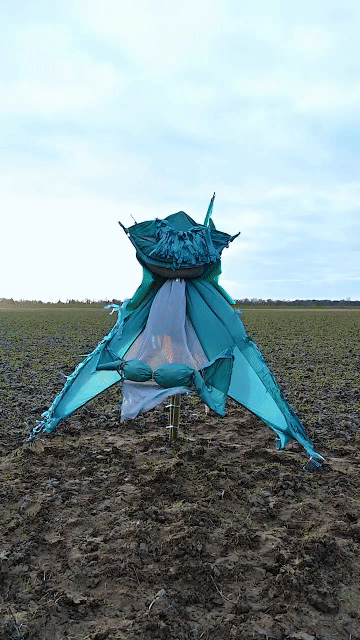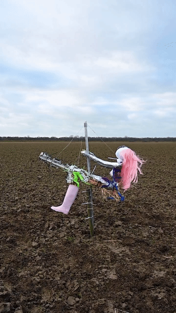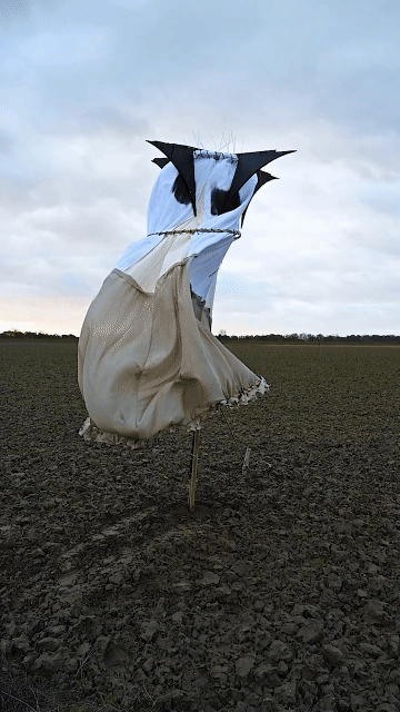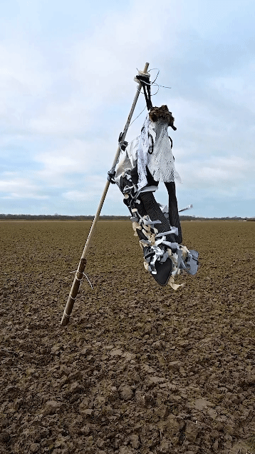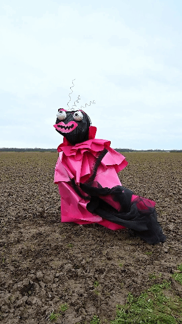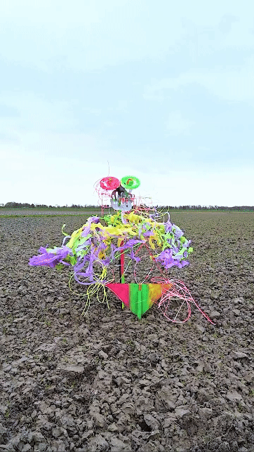 Rinkelende munten kletteren tegen een figuur en bij elke windvlaag draaien de gezichten om hun as. Een reusachtige hand probeert de wind te grijpen. Een ander wezen weerkaatst het zonlicht als een discobal in een verlaten club. CD-schijfjes met onbekende inhoud fonkelen alsof ze naar je knipperen. Twintig vogelverschrikkers doemen op in het uitgestrekte veld van Kamperland – het weidse, dunbevolkte en vlakke landschap van het Zeeuwse platteland.