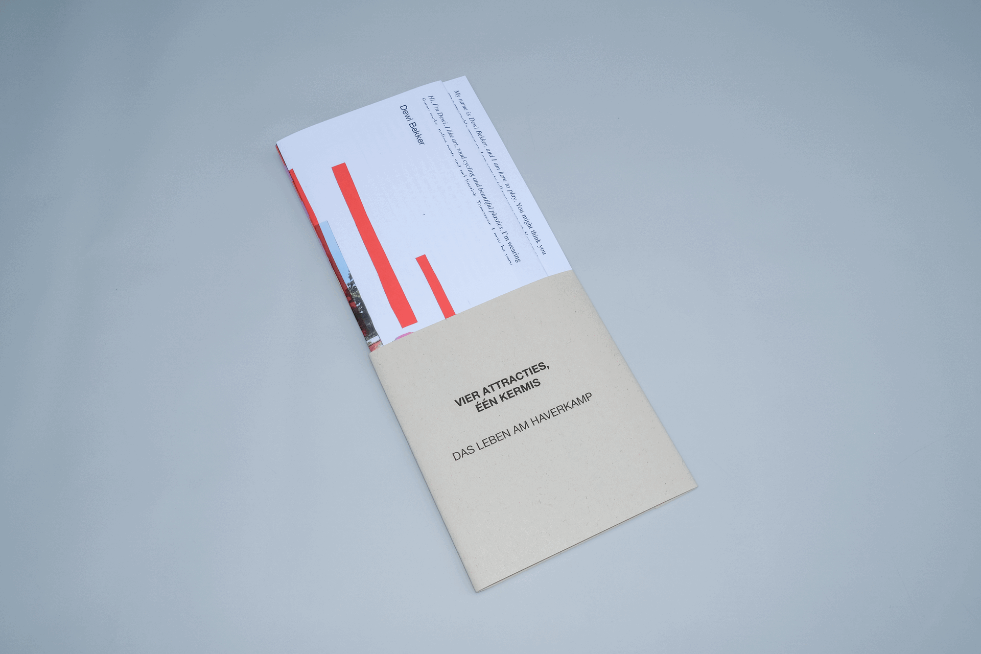 This publication documentated the exhibition series Vier attracties, één kermis. Through four “solo” exhibitions, in which they impersonate eachother, the members of Das Leben am Haverkamp playfully explore the meaning of individual artisthood and identity. Text by Pia Louwerens, Anouk van Klaveren, Dewi Bekker, Gino Anthonisse en Christa van der Meer.